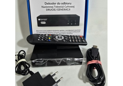 W sprzedaży posiadamy używany dekoder do odbioru naziemnej telewizji cyfrowej OPTICUM Blue w komplecie z pudełkiem zasilaczem i pilotem oraz kablem HDMI. Oferowane urządzenie jest sprawne i posiada nieznaczne ślady użytkowania. Brak dowodu zakupu.