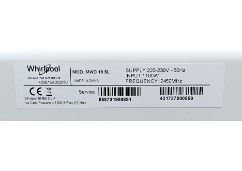 Kuchenka mikrofalowa Whirlpool MWD19SL