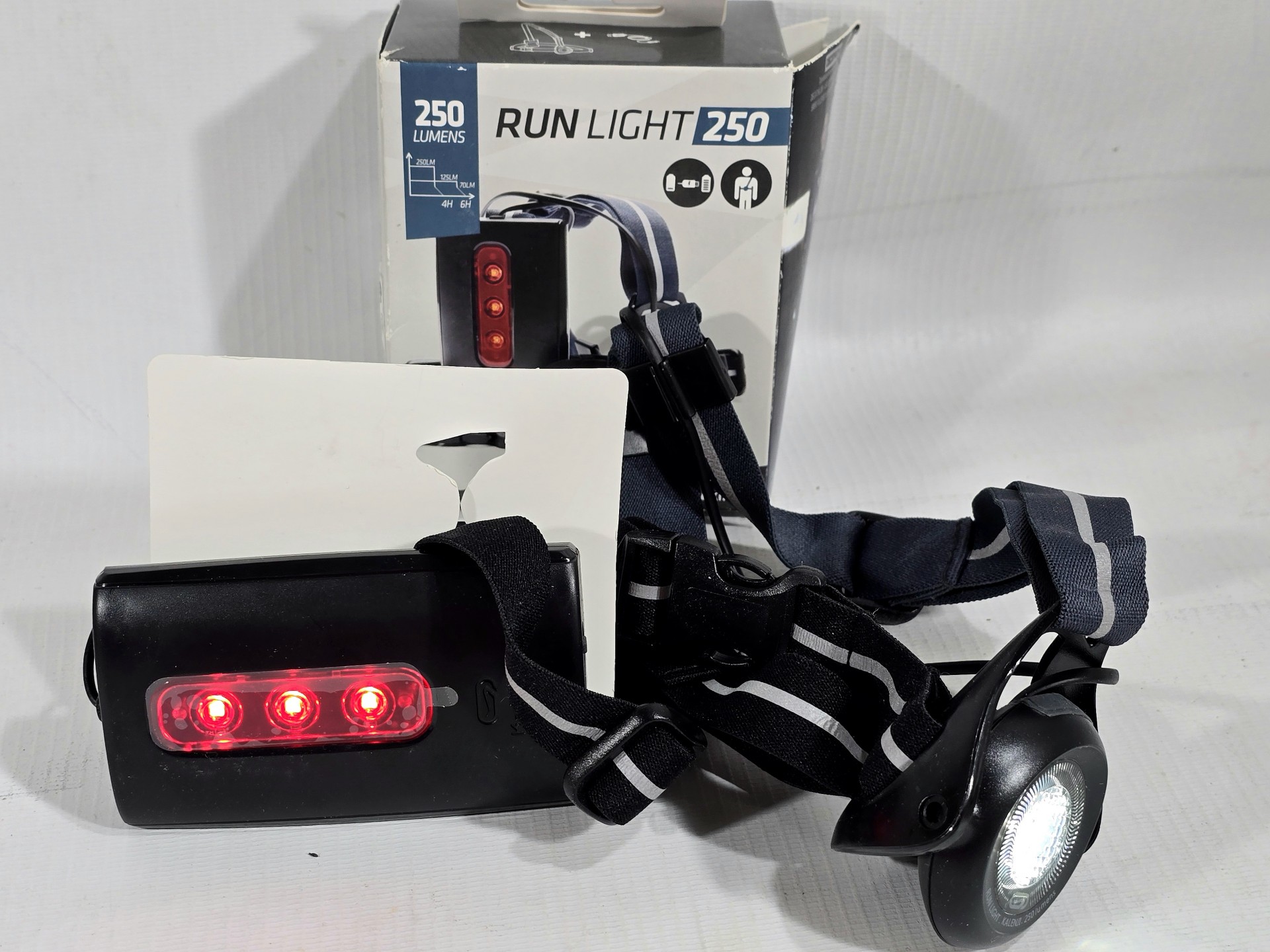 W sprzedaży posiadamy używaną lampkę do biegania KIPRUN Run Light RL 250 250LM