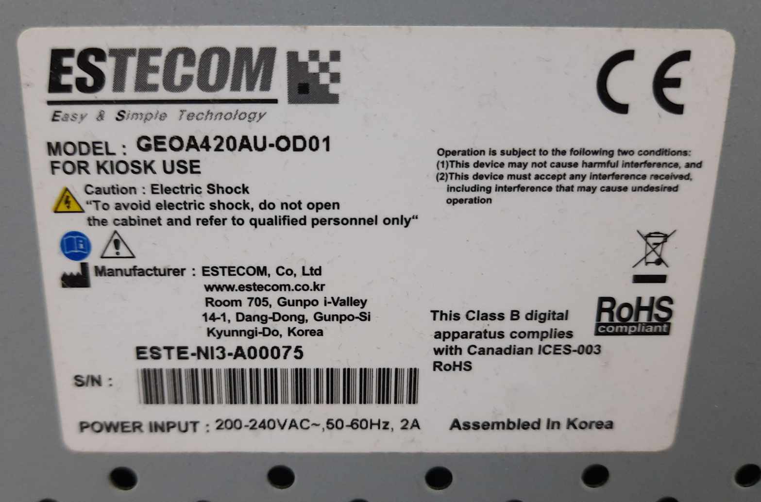 Posiadamy w sprzedaży używany Monitor Estecom 42'' model : geoa420au-od01