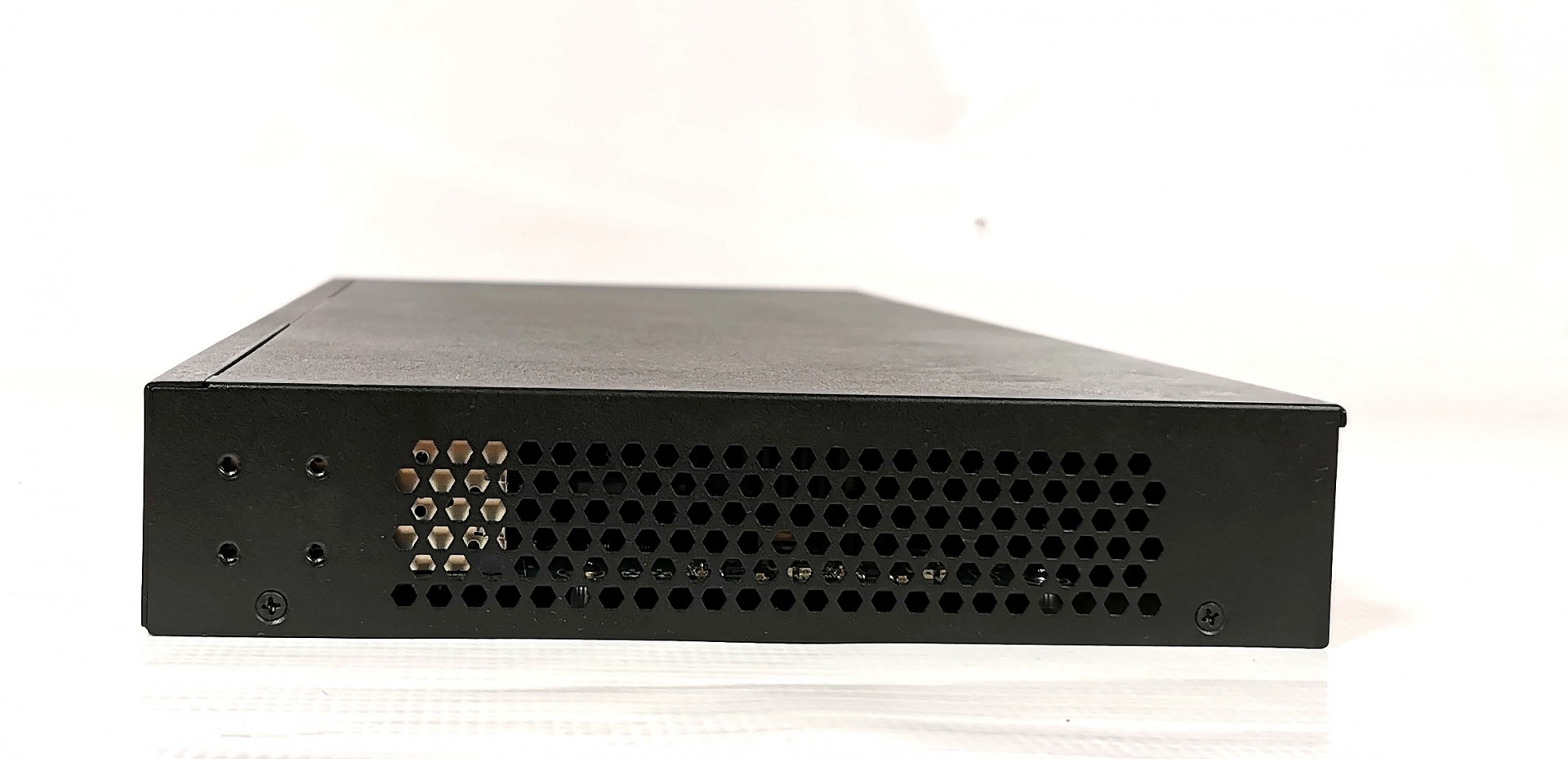 Na sprzedaż używany switch marki Barox. Urządzenie nosi bardzo delikatne ślady użytkowania w postaci pojedynczych, drobnych rysek na obudowie..