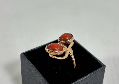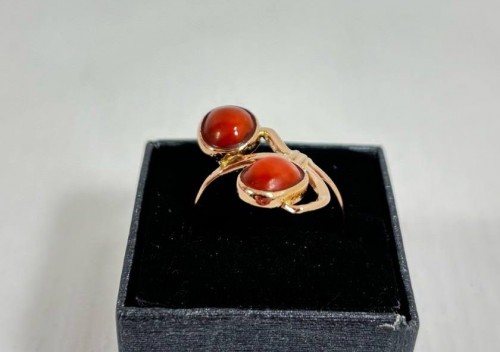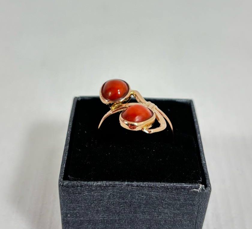 Złoty pierścionek z koralem pr.585 /w. 3,87 g/ R: 18